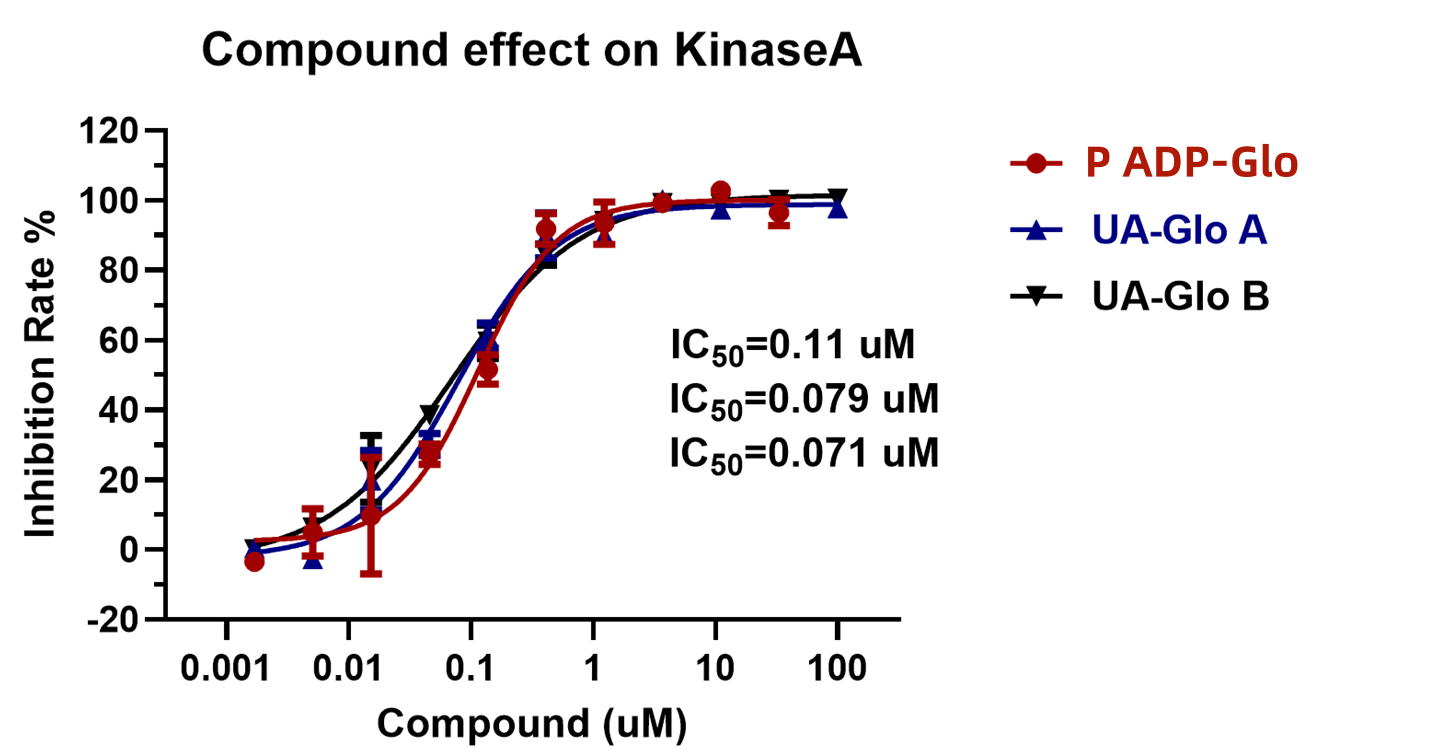 综上所述,UA-Glo® 激酶ADP检测试剂盒是一种集灵敏度、稳定性、便捷性与信息丰富度于一体的先进分析工具。它不仅能够满足基础科研中对激酶活性精确测定的需求,更通过其优异的性能参数和简易的均相操作流程,为大规模激酶靶点药物筛选、抑制剂的动力学表征及作用机制分类研究提供了强有力的技术支持。