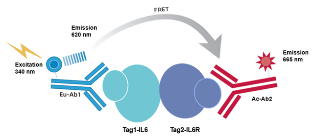 IL-6蛋白通过细胞表面Ⅰ型细胞因子受体复合物发出信号。该复合物由配体结合IL-6受体α链和信号转导组分gp130组成。gp130是几种细胞因子的常见信号转导因子,包括白血病抑制因子、睫状神经营养因子、制瘤素M、IL-11和心肌营养素-1,几乎在大多数组织中普遍存在。相反,CD126的表达局限于某些组织。当IL-6与其受体相互作用时,会触发gp130和IL-6受体蛋白形成复合物,从而激活受体。这些复合物通过将gp130的细胞内区域聚集在一起,启动信号转导级联反应,包括Janus激酶以及信号转导和转录激活因子。TR-FRET IL-6/IL-6R试剂盒可用于研究IL-6与受体亚基的结合模式,评估不同条件下受体配体相互作用的动态变化。
