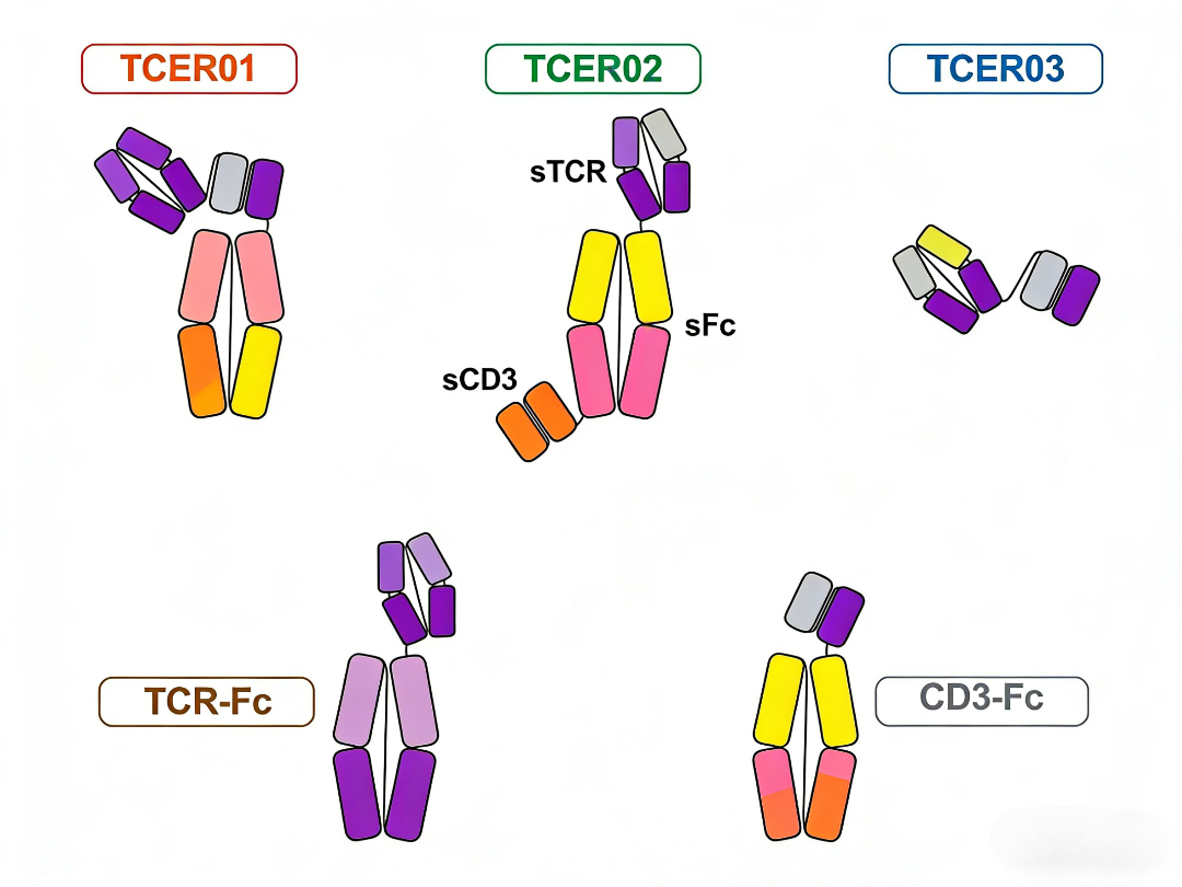 在具体研究中,通过对已知TCR序列的优化筛选,结合AlphaFold 3.0等计算工具的结构预测与亲和力评估,研究人员成功筛选出具有高亲和力的TCR识别域。进一步通过结构改造,包括Fc片段的优化设计,增强了TCE的稳定性和功能活性。实验结果显示,优化后的TCE分子在体外能够有效介导T细胞对表达KRAS[G12V]/HLA-A*11:01复合物的肿瘤细胞产生特异性杀伤,表现为IFN-γ、颗粒酶B等效应分子的显著分泌以及肿瘤细胞裂解率的提高。