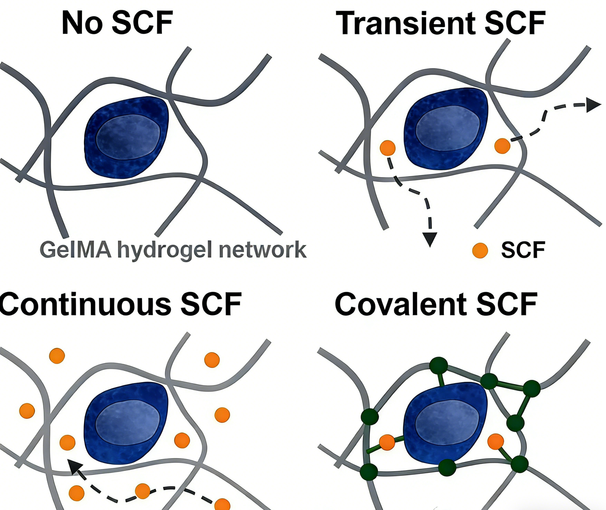 4. 共价固定组: 采用上述AC-PEG-NHS策略将SCF共价固定于GelMA网络中。