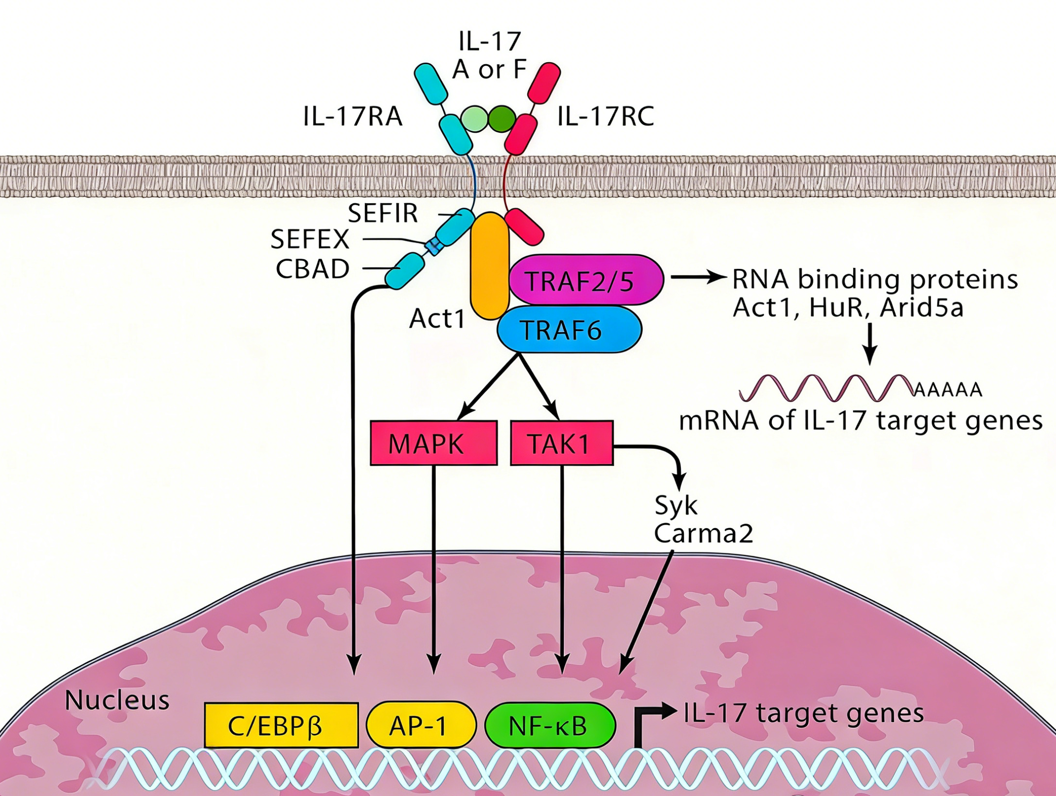 当IL-17A的产生失控或作用靶点不适当时,其强大的促炎和组织重塑能力会驱动多种慢性炎症性疾病和自身免疫病。