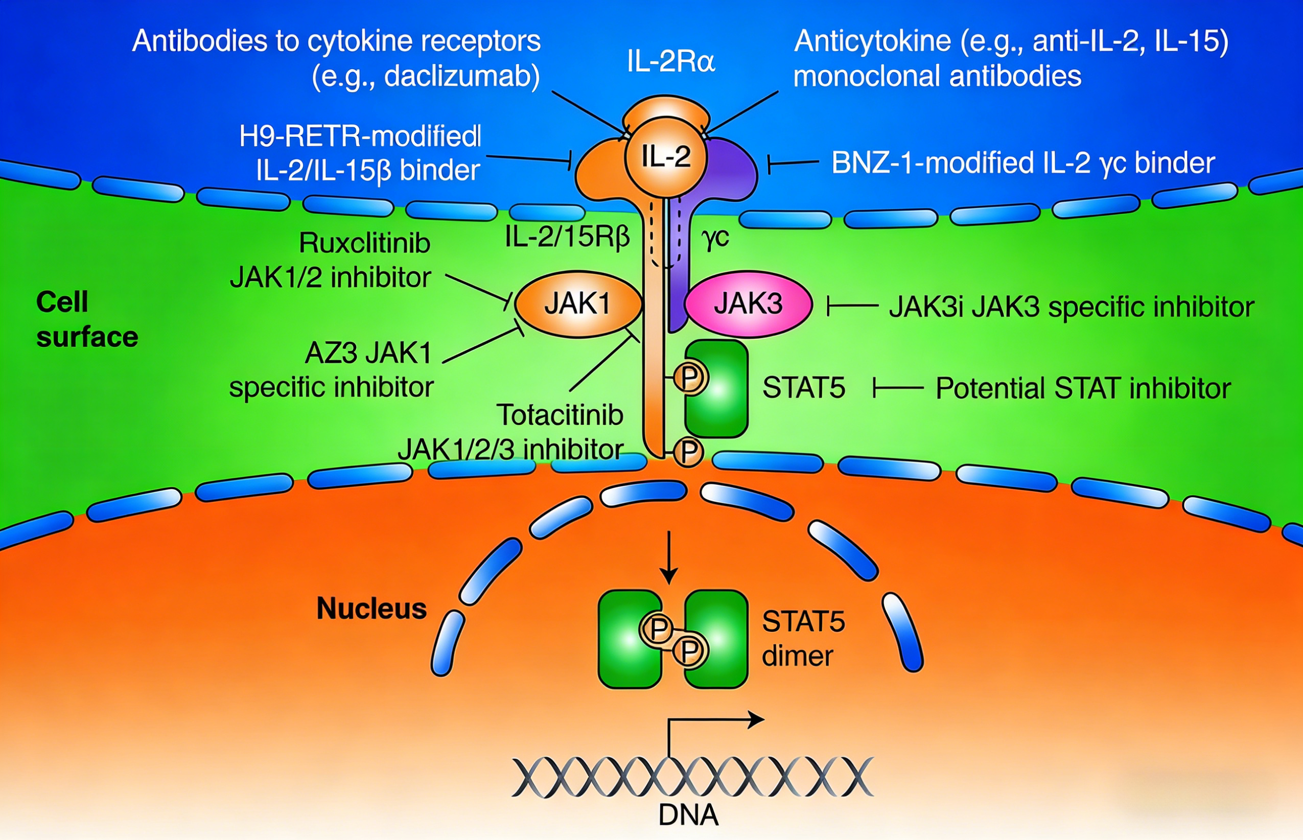 白介素-2(IL-2)是一种具有双向免疫调节作用的T细胞因子。近年来,低剂量IL-2治疗在多种自身免疫性疾病中展现出良好疗效。基于CSU患者存在T细胞免疫失衡的前期研究发现,研究者提出采用低剂量IL-2进行免疫调节的治疗策略,以恢复免疫稳态、控制疾病活动。